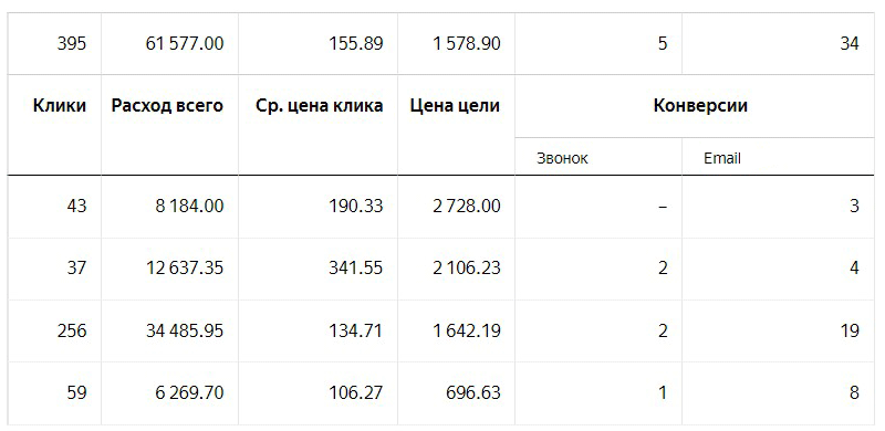 Были и нормальные кампании в плане цены конверсии, но они давали слишком мало конверсий. Например, нормально работала кампания на сборку конструкций: