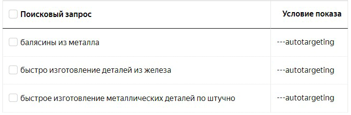 При проверке рекламных кампаний у клиента обнаружено несколько крайне неэффективных кампаний. Все они были по теме изготовления деталей на заказ: